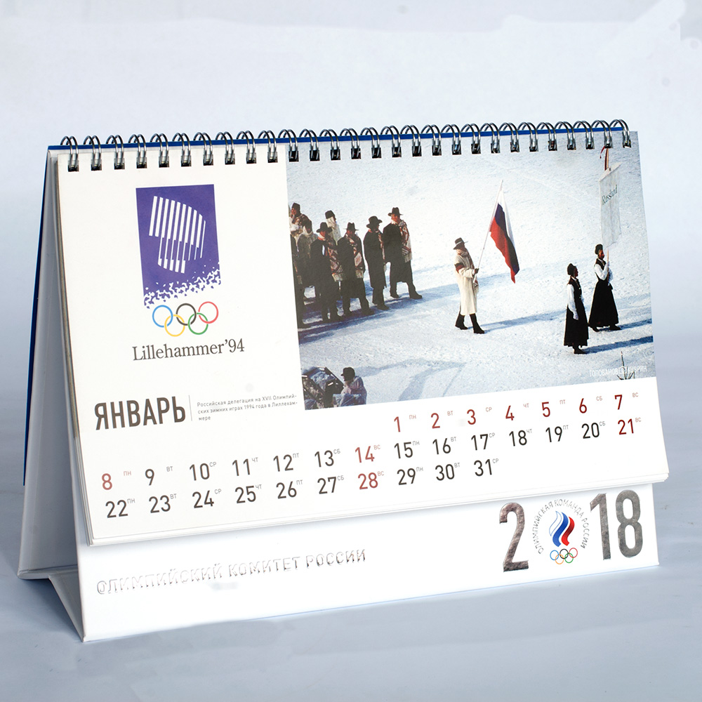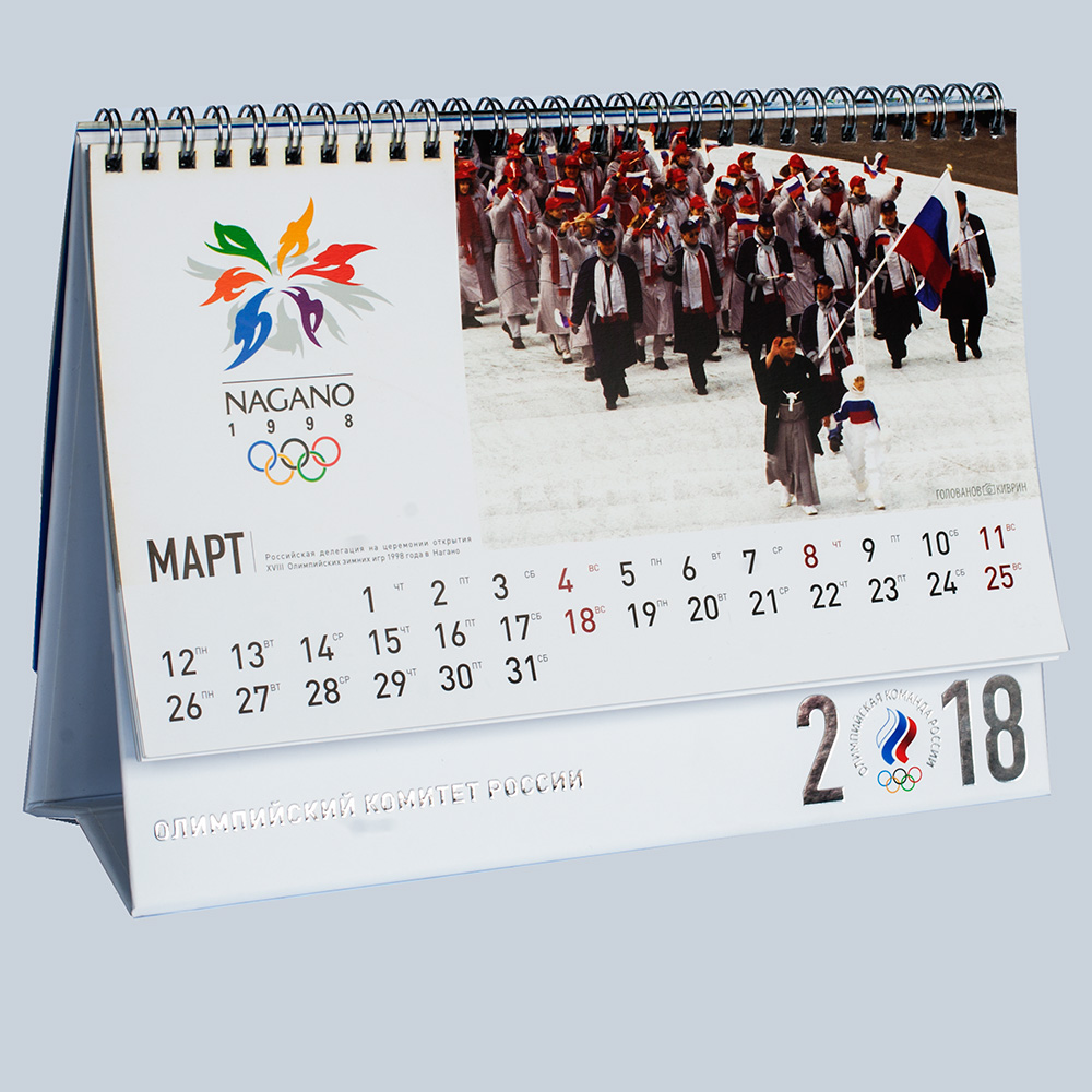 Календарь для Олимпийского комитета России — официальное издание с памятными датами, спортивными событиями и иллюстрациями, предназначенное для планирования и презентации мероприятий.